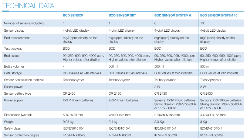 - Measurement on scales of 90, 250, 600, 999 and 4000 ppm BOD