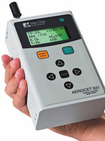 Aerosol Mass and Particle Count Measurements in a Single Hand held Unit The AEROCET 531S is a small, hand-held, battery operated, and completely portable unit. This unit provides both particle counts and mass PM measurements.